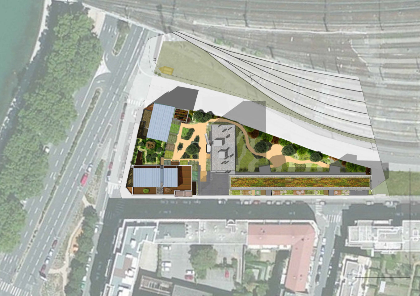 Le projet prend place au cœur de Lyon 7, où étaient implantés d’anciens logements destinés aux cheminots, a proximité de la voie ferrée menant à la gare de Perrache. Ce site d’exception, en bordure du Rhône, offre des vues magnifiques sur Fourvière et le grand paysage, et profite du dynamisme urbain du projet de ville de la ZAC des Girondins.